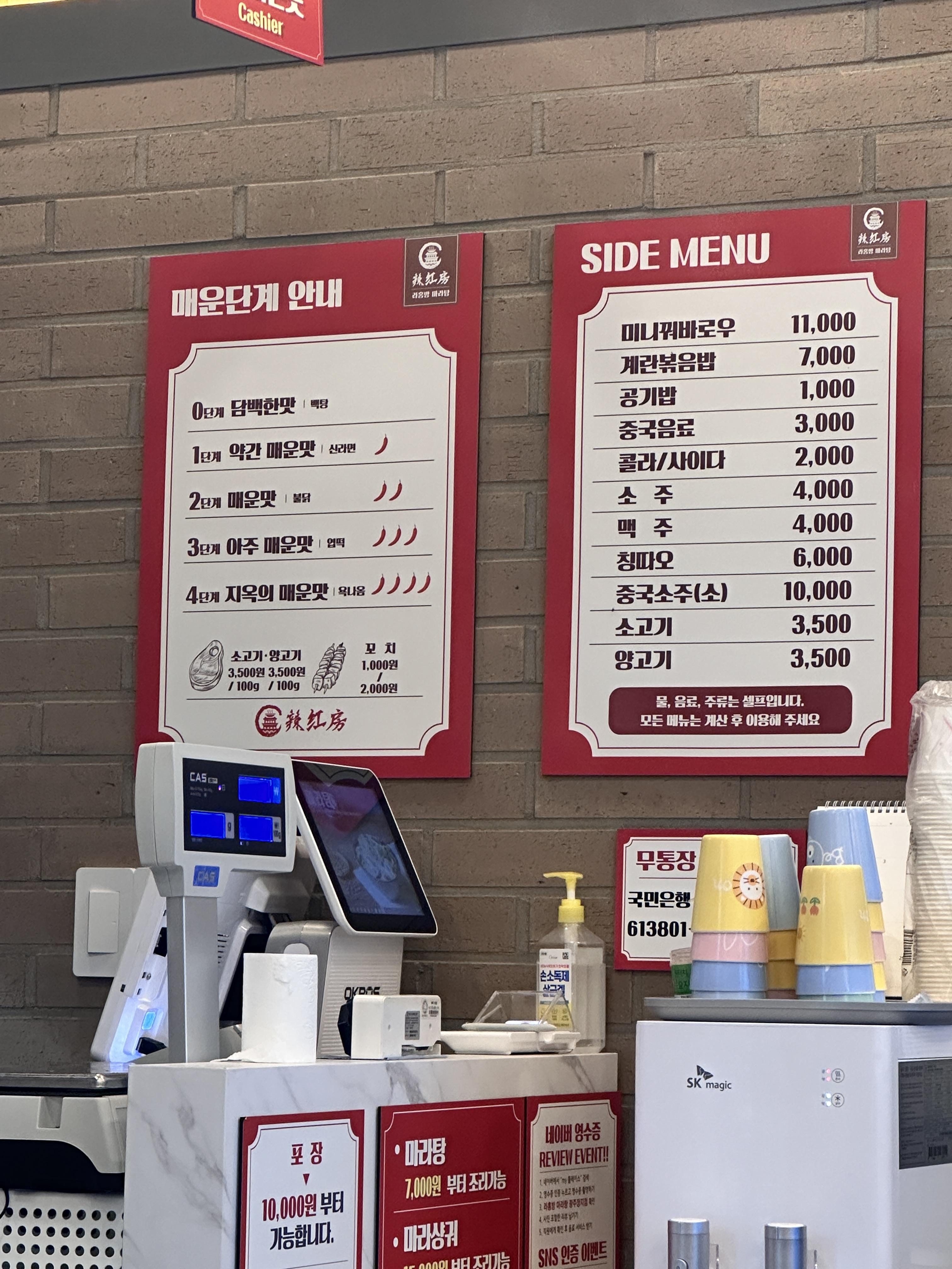 마라탕은 7천원 마라샹궈는 1만5천원 부터 조리가 가능하다고 하네요.